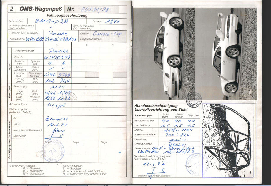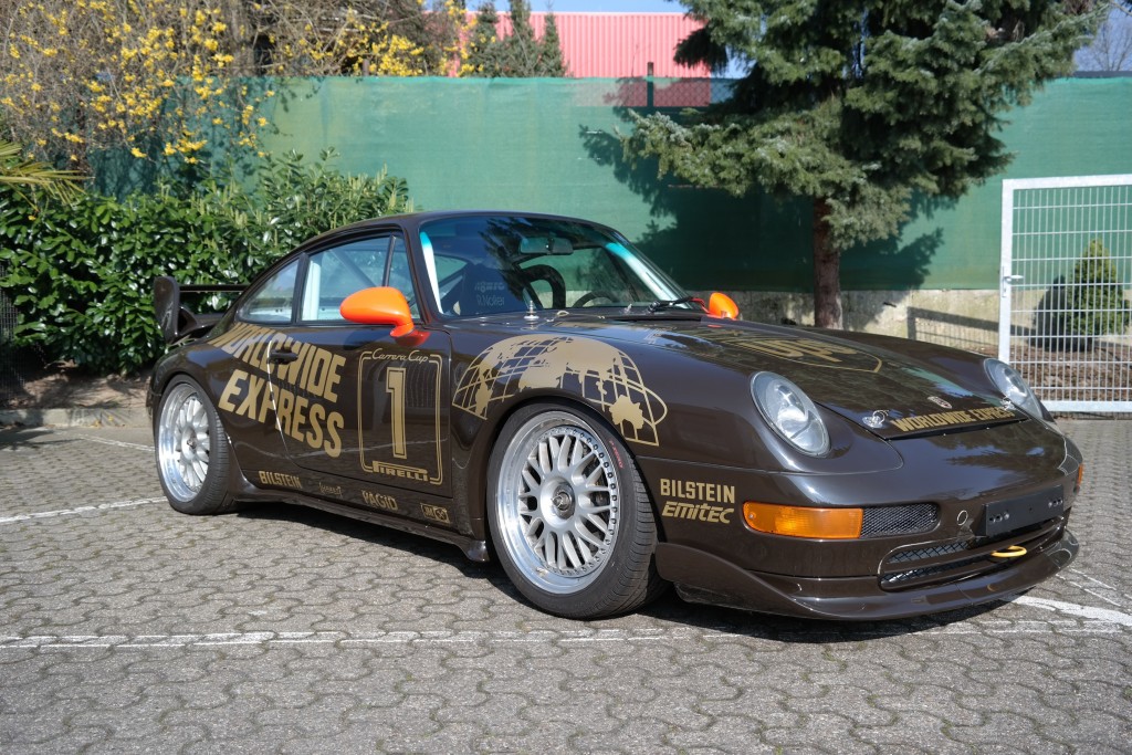 Dieser Porsche 993 Cup Rennwagen kommt mit 3,8 Liter Sechzylinder-Boxermotor hat eine komplette Motorrevision hinter sich und ist technisch wie optisch im Bestzustand.